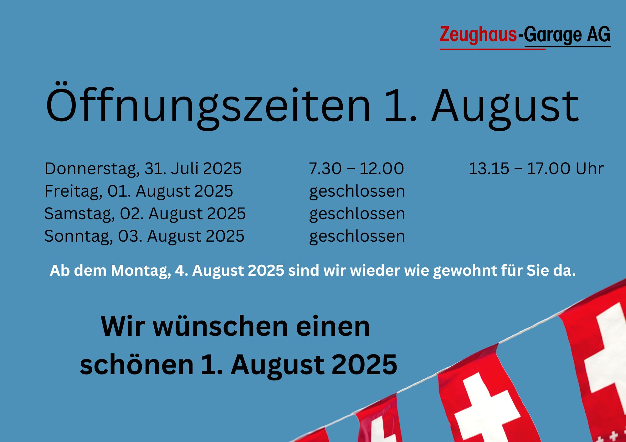 Öffnungszeiten über 1. August zhgwp2025-07-24T10:47:05+02:00 Share This Story, Choose Your Platform! FacebookTwitterRedditLinkedInTumblrPinterestVkE-Mail